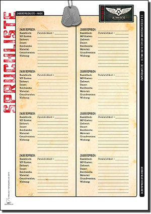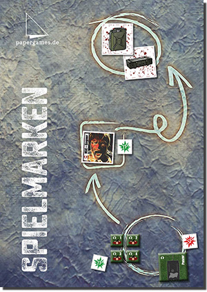 Charakterbögen, Spielmarken, großformatige Übersichtskarten und alle anderen eventuell zum Spiel nötigen Formulare